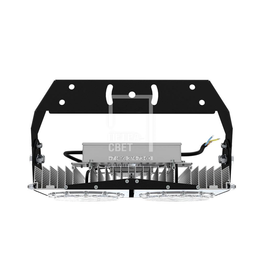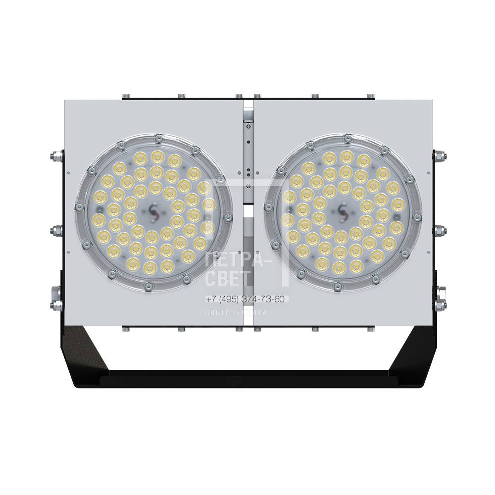 Серия промышленных светодиодных прожекторов для освещения: • спортивных площадок, бассейнов, теннисных кортов; • площадей, открытых парковок; • складов, • производственных помещений. Прожекторы малых мощностей могут использоваться в том числе и в архитектурном освещении. Серия «Прожектор D» – это светильники с высокой энергоэффективностью (до 185 лм/Вт) и круглыми линзами. Прожекторы имеют оптимальное соотношение эффективности и цены за люмен, а широкий мощностной ряд позволяет решать самые разные светотехнические задачи. [Корпус] Экструдированный корпус из анодированного алюминия имеет большую площадь поверхности, что обеспечивает эффективное теплоотведение от светодиодов. [Светодиодный модуль] Светодиодный модуль содержит значительное количество диодов, равномерно распределённых по большой площади. За счёт этого снижается габаритная яркость и обеспечивается комфортное неслепящее освещение. Светодиоды работают при низких токах (50% от номинальных и ниже), что повышает эффективность светильника и увеличивает срок его службы. [Линза] Линза изготовлена из УФ-стабилизированного поликарбоната, который не мутнеет, не желтеет и не трескается при эксплуатации на улице. [Источник питания] Источник питания наружного исполнения, его металлический корпус залит теплопроводящим компаундом. За счёт этого снижается нагрев светодиодного модуля и самого источника питания, поэтому светильник служит дольше. Также источник питания защищён от микросекундных импульсов высокой энергии. Это позволяет сохранять работоспособность светильника даже при появлении в сети посторонних помех. [Крепление] В комплекте идёт кронштейн, который позволяет регулировать угол наклона светильников. Специальные зубцы на кронштейнах (для светильников 200-300 Вт) дополнительно облегчают регулировку положения прожектора.