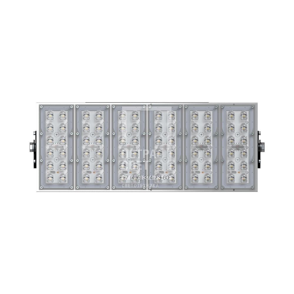 Серия промышленных светодиодных прожекторов для освещения: • футбольных полей, • крытых спортивных площадок, • складов и производственных помещений, • портов и подобных больших территорий, • открытых парковок. Прожекторы малых мощностей могут использоваться в том числе и в архитектурном освещении. Серия «Прожектор S» – это универсальные светильники c высокой эффективностью (до 173 лм/Вт), широким набором оптик и мощностей. За счёт улучшенной конструкции «Прожекторы S» обладают малыми весом и габаритами. [Корпус] Экструдированный корпус из анодированного алюминия имеет большую площадь поверхности, что обеспечивает эффективное теплоотведение от светодиодов. [Светодиодный модуль] Светодиодный модуль состоит из мощных светодиодов, адаптированных под работу в том числе с узкой оптикой. Светодиоды установлены методом поверхностного монтажа на плату с алюминиевой основой, что обеспечивает эффективный отвод тепла от диодов к корпусу-радиатору. [Линза] Линза изготовлена из УФ-стабилизированного поликарбоната, который не мутнеет, не желтеет и не трескается при эксплуатации в том числе на улице. [Источник питания] Источник питания наружного исполнения, его металлический корпус залит теплопроводящим компаундом. Это снижает температуру на элементах источника питания, увеличивая срок его службы. Кроме того, за счёт наружного исполнения источника снижается нагрев светодиодного модуля, и сам светильник служит дольше. Также источник питания защищён от микросекундных импульсов высокой энергии, что позволит сохранить работоспособность светильника даже при появлении в сети посторонних помех. [Кронштейн] В комплекте идёт кронштейн, который позволяет регулировать угол наклона прожектора. Специальные зубцы на кронштейнах (для светильников 200-300 Вт) дополнительно облегчают регулировку положения прожектора.