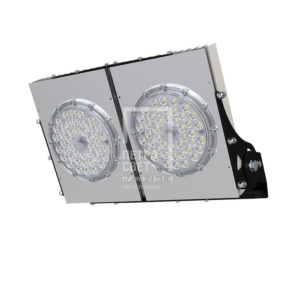 Серия промышленных светодиодных прожекторов для освещения: • спортивных площадок, бассейнов, теннисных кортов; • площадей, открытых парковок; • складов, • производственных помещений. Прожекторы малых мощностей могут использоваться в том числе и в архитектурном освещении. Серия «Прожектор D» – это светильники с высокой энергоэффективностью (до 185 лм/Вт) и круглыми линзами. Прожекторы имеют оптимальное соотношение эффективности и цены за люмен, а широкий мощностной ряд позволяет решать самые разные светотехнические задачи. [Корпус] Экструдированный корпус из анодированного алюминия имеет большую площадь поверхности, что обеспечивает эффективное теплоотведение от светодиодов. [Светодиодный модуль] Светодиодный модуль содержит значительное количество диодов, равномерно распределённых по большой площади. За счёт этого снижается габаритная яркость и обеспечивается комфортное неслепящее освещение. Светодиоды работают при низких токах (50% от номинальных и ниже), что повышает эффективность светильника и увеличивает срок его службы. [Линза] Линза изготовлена из УФ-стабилизированного поликарбоната, который не мутнеет, не желтеет и не трескается при эксплуатации на улице. [Источник питания] Источник питания наружного исполнения, его металлический корпус залит теплопроводящим компаундом. За счёт этого снижается нагрев светодиодного модуля и самого источника питания, поэтому светильник служит дольше. Также источник питания защищён от микросекундных импульсов высокой энергии. Это позволяет сохранять работоспособность светильника даже при появлении в сети посторонних помех. [Крепление] В комплекте идёт кронштейн, который позволяет регулировать угол наклона светильников. Специальные зубцы на кронштейнах (для светильников 200-300 Вт) дополнительно облегчают регулировку положения прожектора.