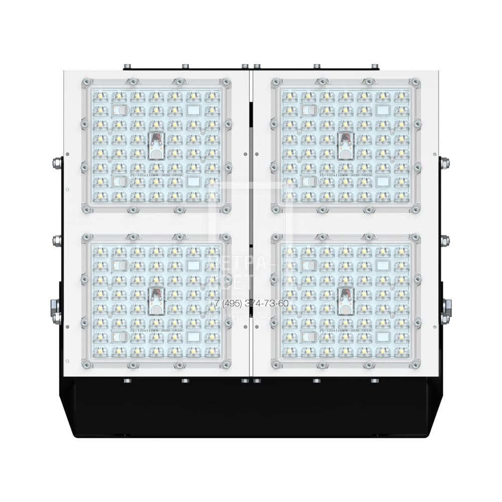 Серия промышленных светодиодных прожекторов для освещения: • футбольных полей, • крытых спортивных площадок, • складов и производственных помещений, • портов и подобных больших территорий, • открытых парковок. Прожекторы малых мощностей могут использоваться в том числе и в архитектурном освещении. Серия «Прожектор S» – это универсальные светильники c высокой эффективностью (до 173 лм/Вт), широким набором оптик и мощностей. За счёт улучшенной конструкции «Прожекторы S» обладают малыми весом и габаритами. [Корпус] Экструдированный корпус из анодированного алюминия имеет большую площадь поверхности, что обеспечивает эффективное теплоотведение от светодиодов. [Светодиодный модуль] Светодиодный модуль состоит из мощных светодиодов, адаптированных под работу в том числе с узкой оптикой. Светодиоды установлены методом поверхностного монтажа на плату с алюминиевой основой, что обеспечивает эффективный отвод тепла от диодов к корпусу-радиатору. [Линза] Линза изготовлена из УФ-стабилизированного поликарбоната, который не мутнеет, не желтеет и не трескается при эксплуатации в том числе на улице. [Источник питания] Источник питания наружного исполнения, его металлический корпус залит теплопроводящим компаундом. Это снижает температуру на элементах источника питания, увеличивая срок его службы. Кроме того, за счёт наружного исполнения источника снижается нагрев светодиодного модуля, и сам светильник служит дольше. Также источник питания защищён от микросекундных импульсов высокой энергии, что позволит сохранить работоспособность светильника даже при появлении в сети посторонних помех. [Кронштейн] В комплекте идёт кронштейн, который позволяет регулировать угол наклона прожектора. Специальные зубцы на кронштейнах (для светильников 200-300 Вт) дополнительно облегчают регулировку положения прожектора.
