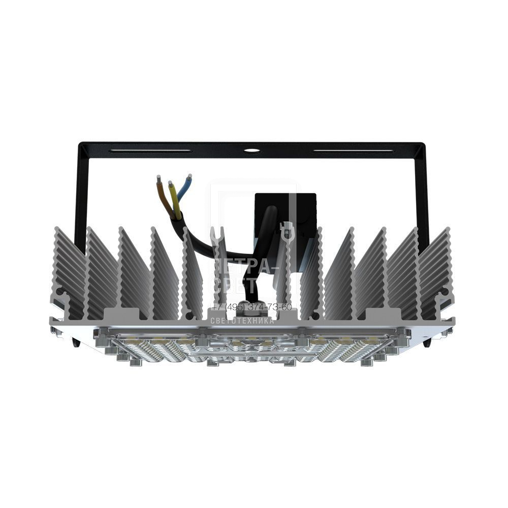 Серия промышленных светодиодных прожекторов для освещения: • футбольных полей, • крытых спортивных площадок, • складов и производственных помещений, • портов и подобных больших территорий, • открытых парковок. Прожекторы малых мощностей могут использоваться в том числе и в архитектурном освещении. Серия «Прожектор S» – это универсальные светильники c высокой эффективностью (до 173 лм/Вт), широким набором оптик и мощностей. За счёт улучшенной конструкции «Прожекторы S» обладают малыми весом и габаритами. [Корпус] Экструдированный корпус из анодированного алюминия имеет большую площадь поверхности, что обеспечивает эффективное теплоотведение от светодиодов. [Светодиодный модуль] Светодиодный модуль состоит из мощных светодиодов, адаптированных под работу в том числе с узкой оптикой. Светодиоды установлены методом поверхностного монтажа на плату с алюминиевой основой, что обеспечивает эффективный отвод тепла от диодов к корпусу-радиатору. [Линза] Линза изготовлена из УФ-стабилизированного поликарбоната, который не мутнеет, не желтеет и не трескается при эксплуатации в том числе на улице. [Источник питания] Источник питания наружного исполнения, его металлический корпус залит теплопроводящим компаундом. Это снижает температуру на элементах источника питания, увеличивая срок его службы. Кроме того, за счёт наружного исполнения источника снижается нагрев светодиодного модуля, и сам светильник служит дольше. Также источник питания защищён от микросекундных импульсов высокой энергии, что позволит сохранить работоспособность светильника даже при появлении в сети посторонних помех. [Кронштейн] В комплекте идёт кронштейн, который позволяет регулировать угол наклона прожектора. Специальные зубцы на кронштейнах (для светильников 200-300 Вт) дополнительно облегчают регулировку положения прожектора.