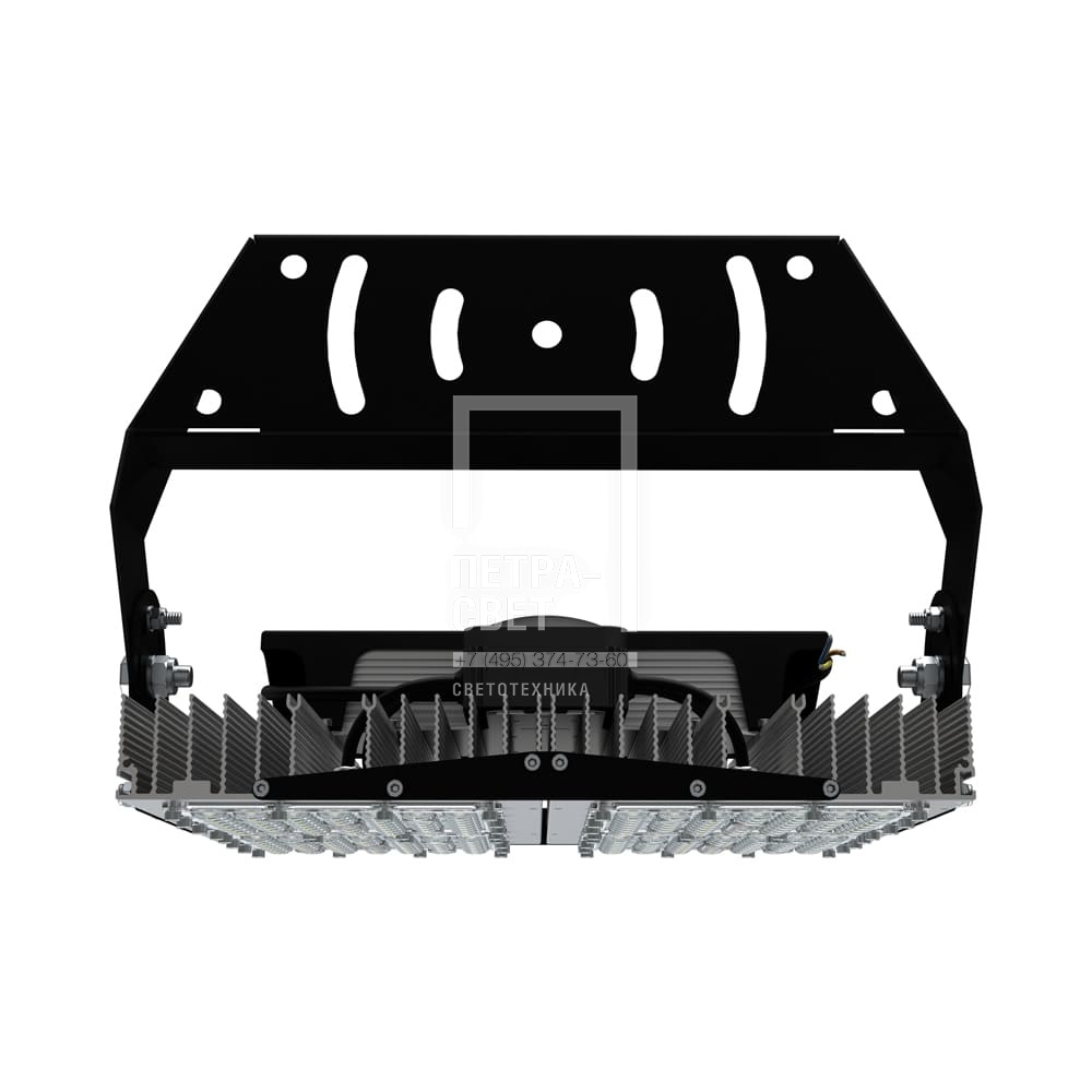 Серия промышленных светодиодных прожекторов для освещения: • футбольных полей, • крытых спортивных площадок, • складов и производственных помещений, • портов и подобных больших территорий, • открытых парковок. Прожекторы малых мощностей могут использоваться в том числе и в архитектурном освещении. Серия «Прожектор S» – это универсальные светильники c высокой эффективностью (до 173 лм/Вт), широким набором оптик и мощностей. За счёт улучшенной конструкции «Прожекторы S» обладают малыми весом и габаритами. [Корпус] Экструдированный корпус из анодированного алюминия имеет большую площадь поверхности, что обеспечивает эффективное теплоотведение от светодиодов. [Светодиодный модуль] Светодиодный модуль состоит из мощных светодиодов, адаптированных под работу в том числе с узкой оптикой. Светодиоды установлены методом поверхностного монтажа на плату с алюминиевой основой, что обеспечивает эффективный отвод тепла от диодов к корпусу-радиатору. [Линза] Линза изготовлена из УФ-стабилизированного поликарбоната, который не мутнеет, не желтеет и не трескается при эксплуатации в том числе на улице. [Источник питания] Источник питания наружного исполнения, его металлический корпус залит теплопроводящим компаундом. Это снижает температуру на элементах источника питания, увеличивая срок его службы. Кроме того, за счёт наружного исполнения источника снижается нагрев светодиодного модуля, и сам светильник служит дольше. Также источник питания защищён от микросекундных импульсов высокой энергии, что позволит сохранить работоспособность светильника даже при появлении в сети посторонних помех. [Кронштейн] В комплекте идёт кронштейн, который позволяет регулировать угол наклона прожектора. Специальные зубцы на кронштейнах (для светильников 200-300 Вт) дополнительно облегчают регулировку положения прожектора.
