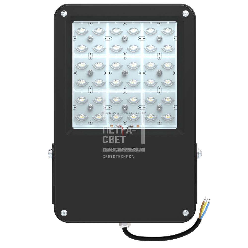 Литые светодиодные прожекторы для освещения: · уличных общественных пространств; · площадей перед торговыми и бизнес-центрами; · придомовых территорий; · парковок; · спортивных площадок; · фасадов зданий. «Прожекторы F» - это современные светильники с высокой световой отдачей и рассеивателем из закалённого стекла. Выгодное решение для большого спектра светотехнических задач. [Корпус] Литой корпус изготовлен из алюминиевого сплава и покрыт порошковой краской (базовый цвет – чёрный, опционально – любой из палитры RAL). В корпусе предусмотрены небольшие рёбра, которые эффективно отводят лишнее тепло, сохраняя эстетичный вид прожектора. [Светодиодный модуль] Светодиодный модуль изготовлен по технологии SMT. Диоды работают при низких токах, что повышает эффективность светильника и увеличивает срок его службы. [Линза] Линза изготовлена из ПММА. Модельный ряд включает широкий набор оптик. [Закаленное стекло] Стекло защищает оптику от влаги, пыли и внешнего механического воздействия. Устойчивость к царапинам, ударам и перепадам температур делает светильник удобным в эксплуатации и уходе. Так же закаленное стекло позволяет использовать светильник на объектах с разными классами пожароопасности. [Источник питания] Источник питания обладает высокой степенью защиты от влаги и пыли (IP67). Его металлический корпус залит теплопроводящим компаундом, за счёт чего снижается нагрев электронных компонентов источника питания, и он служит дольше. Также источник питания защищён от микросекундных импульсов высокой энергии. Это позволяет сохранять работоспособность светильника даже при появлении в сети посторонних помех. [Крепление] Прожектор крепится на универсальный поворотный кронштейн с возможностью регулировки угла наклона. Кронштейн изготовлен из оцинкованной стали и покрыт порошковой краской (опционально цвет может быть любым из таблицы RAL).