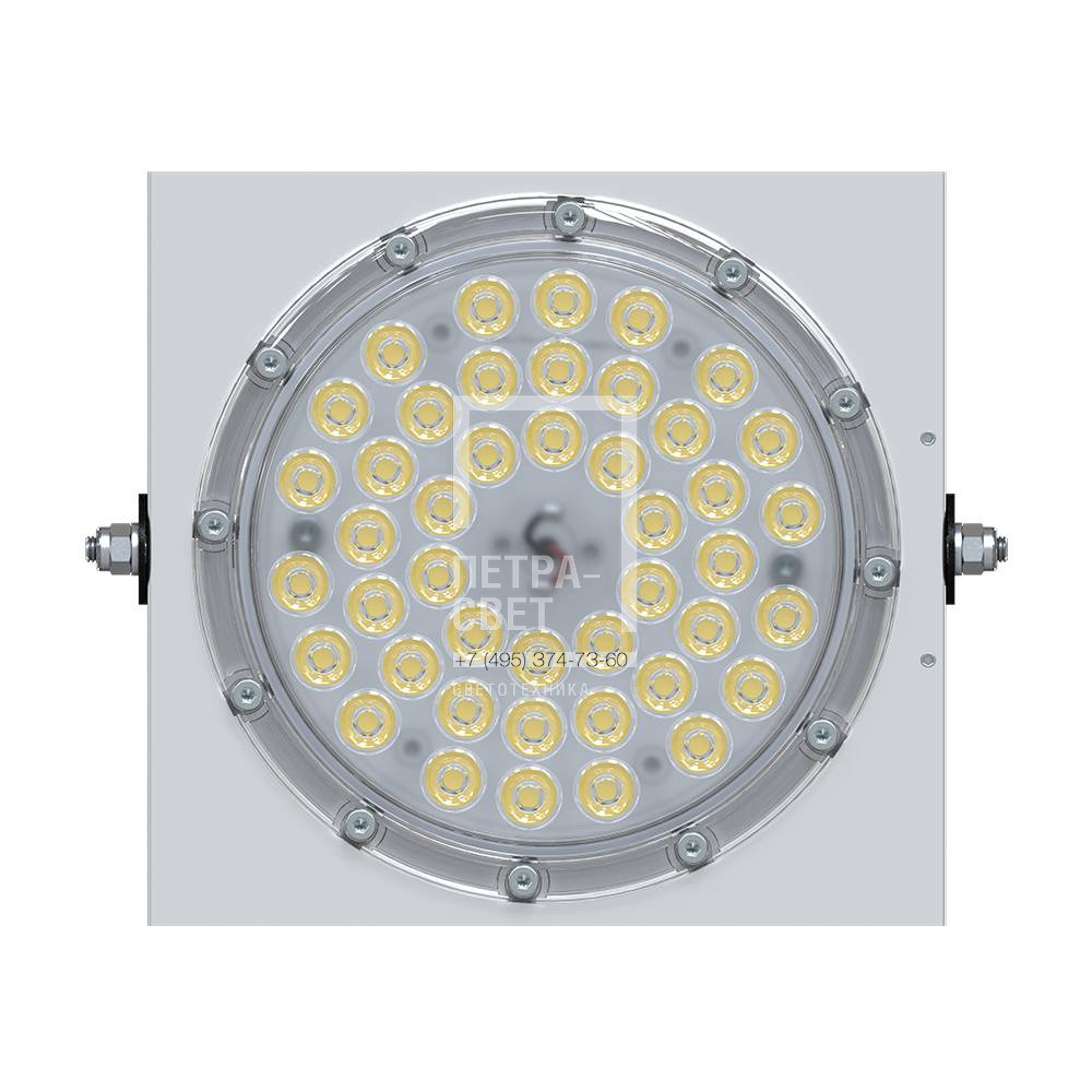 Серия промышленных светодиодных прожекторов для освещения: • спортивных площадок, бассейнов, теннисных кортов; • площадей, открытых парковок; • складов, • производственных помещений. Прожекторы малых мощностей могут использоваться в том числе и в архитектурном освещении. Серия «Прожектор D» – это светильники с высокой энергоэффективностью (до 185 лм/Вт) и круглыми линзами. Прожекторы имеют оптимальное соотношение эффективности и цены за люмен, а широкий мощностной ряд позволяет решать самые разные светотехнические задачи. [Корпус] Экструдированный корпус из анодированного алюминия имеет большую площадь поверхности, что обеспечивает эффективное теплоотведение от светодиодов. [Светодиодный модуль] Светодиодный модуль содержит значительное количество диодов, равномерно распределённых по большой площади. За счёт этого снижается габаритная яркость и обеспечивается комфортное неслепящее освещение. Светодиоды работают при низких токах (50% от номинальных и ниже), что повышает эффективность светильника и увеличивает срок его службы. [Линза] Линза изготовлена из УФ-стабилизированного поликарбоната, который не мутнеет, не желтеет и не трескается при эксплуатации на улице. [Источник питания] Источник питания наружного исполнения, его металлический корпус залит теплопроводящим компаундом. За счёт этого снижается нагрев светодиодного модуля и самого источника питания, поэтому светильник служит дольше. Также источник питания защищён от микросекундных импульсов высокой энергии. Это позволяет сохранять работоспособность светильника даже при появлении в сети посторонних помех. [Крепление] В комплекте идёт кронштейн, который позволяет регулировать угол наклона светильников. Специальные зубцы на кронштейнах (для светильников 200-300 Вт) дополнительно облегчают регулировку положения прожектора.