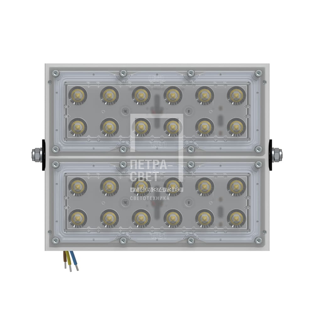 Серия промышленных светодиодных прожекторов для освещения: • футбольных полей, • крытых спортивных площадок, • складов и производственных помещений, • портов и подобных больших территорий, • открытых парковок. Прожекторы малых мощностей могут использоваться в том числе и в архитектурном освещении. Серия «Прожектор S» – это универсальные светильники c высокой эффективностью (до 173 лм/Вт), широким набором оптик и мощностей. За счёт улучшенной конструкции «Прожекторы S» обладают малыми весом и габаритами. [Корпус] Экструдированный корпус из анодированного алюминия имеет большую площадь поверхности, что обеспечивает эффективное теплоотведение от светодиодов. [Светодиодный модуль] Светодиодный модуль состоит из мощных светодиодов, адаптированных под работу в том числе с узкой оптикой. Светодиоды установлены методом поверхностного монтажа на плату с алюминиевой основой, что обеспечивает эффективный отвод тепла от диодов к корпусу-радиатору. [Линза] Линза изготовлена из УФ-стабилизированного поликарбоната, который не мутнеет, не желтеет и не трескается при эксплуатации в том числе на улице. [Источник питания] Источник питания наружного исполнения, его металлический корпус залит теплопроводящим компаундом. Это снижает температуру на элементах источника питания, увеличивая срок его службы. Кроме того, за счёт наружного исполнения источника снижается нагрев светодиодного модуля, и сам светильник служит дольше. Также источник питания защищён от микросекундных импульсов высокой энергии, что позволит сохранить работоспособность светильника даже при появлении в сети посторонних помех. [Кронштейн] В комплекте идёт кронштейн, который позволяет регулировать угол наклона прожектора. Специальные зубцы на кронштейнах (для светильников 200-300 Вт) дополнительно облегчают регулировку положения прожектора.