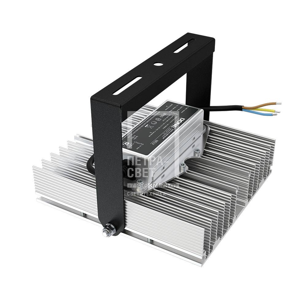 Серия промышленных светодиодных прожекторов для освещения: • спортивных площадок, бассейнов, теннисных кортов; • площадей, открытых парковок; • складов, • производственных помещений. Прожекторы малых мощностей могут использоваться в том числе и в архитектурном освещении. Серия «Прожектор D» – это светильники с высокой энергоэффективностью (до 185 лм/Вт) и круглыми линзами. Прожекторы имеют оптимальное соотношение эффективности и цены за люмен, а широкий мощностной ряд позволяет решать самые разные светотехнические задачи. [Корпус] Экструдированный корпус из анодированного алюминия имеет большую площадь поверхности, что обеспечивает эффективное теплоотведение от светодиодов. [Светодиодный модуль] Светодиодный модуль содержит значительное количество диодов, равномерно распределённых по большой площади. За счёт этого снижается габаритная яркость и обеспечивается комфортное неслепящее освещение. Светодиоды работают при низких токах (50% от номинальных и ниже), что повышает эффективность светильника и увеличивает срок его службы. [Линза] Линза изготовлена из УФ-стабилизированного поликарбоната, который не мутнеет, не желтеет и не трескается при эксплуатации на улице. [Источник питания] Источник питания наружного исполнения, его металлический корпус залит теплопроводящим компаундом. За счёт этого снижается нагрев светодиодного модуля и самого источника питания, поэтому светильник служит дольше. Также источник питания защищён от микросекундных импульсов высокой энергии. Это позволяет сохранять работоспособность светильника даже при появлении в сети посторонних помех. [Крепление] В комплекте идёт кронштейн, который позволяет регулировать угол наклона светильников. Специальные зубцы на кронштейнах (для светильников 200-300 Вт) дополнительно облегчают регулировку положения прожектора.