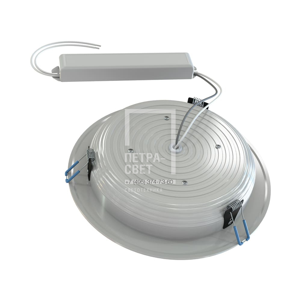 Серия встраиваемых светодиодных светильников для освещения: • торговых, офисных и административных помещений, • конференц-залов, • холлов и коридоров. Рекомендуемая высота установки светильника 2-10 метров. Бюджетная модель светильников для встраиваемого монтажа со световой эффективностью до 120 лм/Вт. Серия отличается малыми размерами, простым монтажом и широким мощностным рядом (от 5 до 50 Вт). [Светодиодный модуль] В светильниках используются светодиодные платы круглой формы из алюминия, что позволяет равномерно и эффективно отводить тепло от светодиодов. [Корпус] Алюминиевый корпус с порошковой окраской имеет три типоразмера: S, M и L. Стандартная степень защиты от влаги и пыли IP20, под заказ возможно исполнение с IP54. [Источник питания] Эффективные источники питания наружного исполнения. [Рассеиватель] Опаловый рассеиватель позволяет добиться мягкого и комфортного освещения. [Крепления] Светильник устанавливается в монтажное отверстие с помощью специальных зажимных пружин.