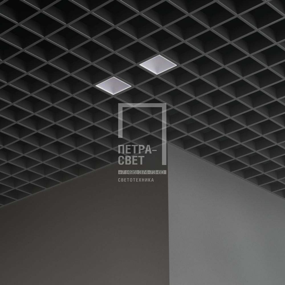 Серия встраиваемых светодиодных светильников для освещения общественных пространств: • офисных помещений, холлов и зон ресепшен, • концертных залов и арт-пространств, • торговых объектов, • административных помещений и т.д. Особенности серии: • «Грильято Мозаик» не только обеспечивает полноценное освещение, но и позволяет создавать индивидуальные светотехнические проекты, например, узоры в сетке потолка; • Литой пластиковый корпус, обеспечивающий привлекательный внешний вид и малый вес светильников; • Простой монтаж и уникальные крепления собственной разработки, которые подходят к любым типовым потолочным профилям. Возможные опции: • исполнение с блоком аварийного питания на 1,5 или 3 часа, • исполнение с индексом цветопередачи CRI90, • исполнение с повышенной степенью пыле- и влагозащиты IP54. [Корпус] Корпус изготавливается из ABS-пластика методом литья под давлением. Цвет корпуса – белый. [Светодиодный модуль] SMT светодиодная плата на алюминиевой подложке. [Источник питания] Источник питания наружного исполнения в пластиковом корпусе. К одному драйверу подключаются несколько светильников в зависимости от комплектации, максимальное количество 7 штук. [Рассеиватель] Рассеиватель из УФ-стабилизированного поликарбоната. [Крепление] Светильники предназначены для встраиваемого монтажа в потолок типа «Грильято» с ячейкой 100х100 мм. В комплекте со светильниками поставляется набор пластиковых монтажных скоб. Скобы спроектированы таким образом, что подойдут к любой типовой высоте потолочного профиля (30, 40 и 50 мм).