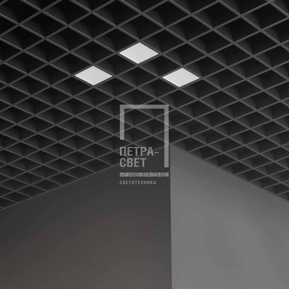 Серия встраиваемых светодиодных светильников для освещения общественных пространств: • офисных помещений, холлов и зон ресепшен, • концертных залов и арт-пространств, • торговых объектов, • административных помещений и т.д. Особенности серии: • «Грильято Мозаик» не только обеспечивает полноценное освещение, но и позволяет создавать индивидуальные светотехнические проекты, например, узоры в сетке потолка; • Литой пластиковый корпус, обеспечивающий привлекательный внешний вид и малый вес светильников; • Простой монтаж и уникальные крепления собственной разработки, которые подходят к любым типовым потолочным профилям. Возможные опции: • исполнение с блоком аварийного питания на 1,5 или 3 часа, • исполнение с индексом цветопередачи CRI90, • исполнение с повышенной степенью пыле- и влагозащиты IP54. [Корпус] Корпус изготавливается из ABS-пластика методом литья под давлением. Цвет корпуса – белый. [Светодиодный модуль] SMT светодиодная плата на алюминиевой подложке. [Источник питания] Источник питания наружного исполнения в пластиковом корпусе. К одному драйверу подключаются несколько светильников в зависимости от комплектации, максимальное количество 7 штук. [Рассеиватель] Рассеиватель из УФ-стабилизированного поликарбоната. [Крепление] Светильники предназначены для встраиваемого монтажа в потолок типа «Грильято» с ячейкой 100х100 мм. В комплекте со светильниками поставляется набор пластиковых монтажных скоб. Скобы спроектированы таким образом, что подойдут к любой типовой высоте потолочного профиля (30, 40 и 50 мм).