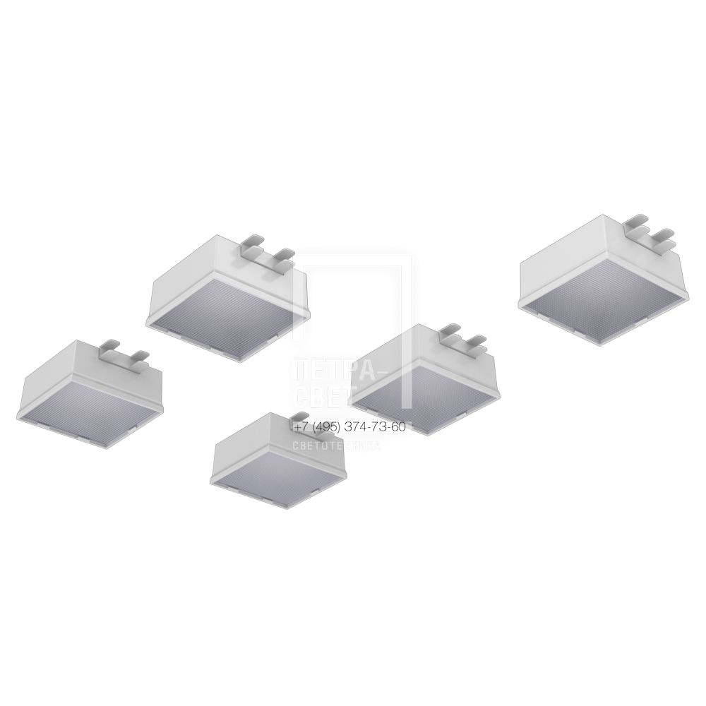Серия встраиваемых светодиодных светильников для освещения общественных пространств: • офисных помещений, холлов и зон ресепшен, • концертных залов и арт-пространств, • торговых объектов, • административных помещений и т.д. Особенности серии: • «Грильято Мозаик» не только обеспечивает полноценное освещение, но и позволяет создавать индивидуальные светотехнические проекты, например, узоры в сетке потолка; • Литой пластиковый корпус, обеспечивающий привлекательный внешний вид и малый вес светильников; • Простой монтаж и уникальные крепления собственной разработки, которые подходят к любым типовым потолочным профилям. Возможные опции: • исполнение с блоком аварийного питания на 1,5 или 3 часа, • исполнение с индексом цветопередачи CRI90, • исполнение с повышенной степенью пыле- и влагозащиты IP54. [Корпус] Корпус изготавливается из ABS-пластика методом литья под давлением. Цвет корпуса – белый. [Светодиодный модуль] SMT светодиодная плата на алюминиевой подложке. [Источник питания] Источник питания наружного исполнения в пластиковом корпусе. К одному драйверу подключаются несколько светильников в зависимости от комплектации, максимальное количество 7 штук. [Рассеиватель] Рассеиватель из УФ-стабилизированного поликарбоната. [Крепление] Светильники предназначены для встраиваемого монтажа в потолок типа «Грильято» с ячейкой 100х100 мм. В комплекте со светильниками поставляется набор пластиковых монтажных скоб. Скобы спроектированы таким образом, что подойдут к любой типовой высоте потолочного профиля (30, 40 и 50 мм).