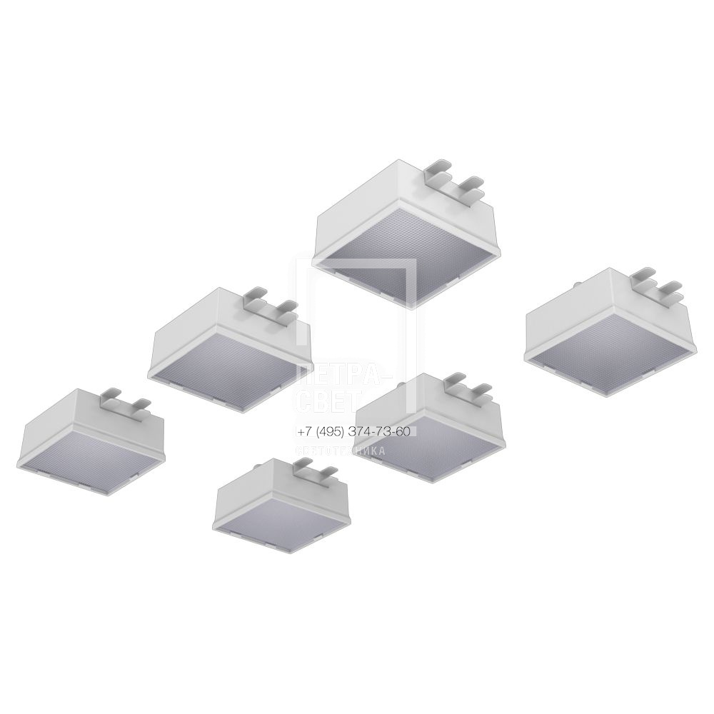 Серия встраиваемых светодиодных светильников для освещения общественных пространств: • офисных помещений, холлов и зон ресепшен, • концертных залов и арт-пространств, • торговых объектов, • административных помещений и т.д. Особенности серии: • «Грильято Мозаик» не только обеспечивает полноценное освещение, но и позволяет создавать индивидуальные светотехнические проекты, например, узоры в сетке потолка; • Литой пластиковый корпус, обеспечивающий привлекательный внешний вид и малый вес светильников; • Простой монтаж и уникальные крепления собственной разработки, которые подходят к любым типовым потолочным профилям. Возможные опции: • исполнение с блоком аварийного питания на 1,5 или 3 часа, • исполнение с индексом цветопередачи CRI90, • исполнение с повышенной степенью пыле- и влагозащиты IP54. [Корпус] Корпус изготавливается из ABS-пластика методом литья под давлением. Цвет корпуса – белый. [Светодиодный модуль] SMT светодиодная плата на алюминиевой подложке. [Источник питания] Источник питания наружного исполнения в пластиковом корпусе. К одному драйверу подключаются несколько светильников в зависимости от комплектации, максимальное количество 7 штук. [Рассеиватель] Рассеиватель из УФ-стабилизированного поликарбоната. [Крепление] Светильники предназначены для встраиваемого монтажа в потолок типа «Грильято» с ячейкой 100х100 мм. В комплекте со светильниками поставляется набор пластиковых монтажных скоб. Скобы спроектированы таким образом, что подойдут к любой типовой высоте потолочного профиля (30, 40 и 50 мм).