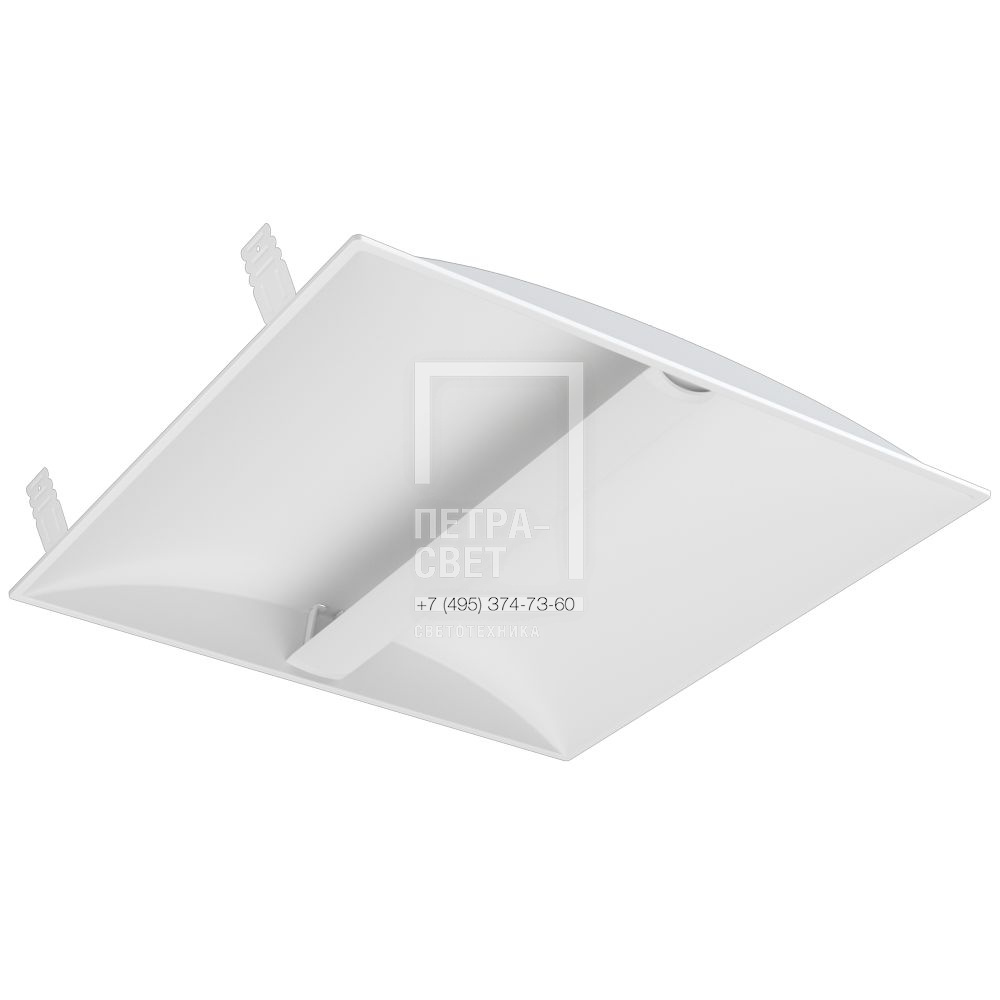 Серия светильников отраженного света для освещения офисов, административных, торговых и образовательных учреждений. «Грильято Рефлект» подойдет для помещений, где необходим комфортный рассеянный свет. Благодаря продуманной форме корпуса, качеству отражающего покрытия, применению высокоэффективных светодиодов на малых токах, светильник «Грильято Рефлект» имеет значительный показатель световой отдачи — до 122 лм/Вт. [Корпус] Корпус светильника вогнутой формы выполняет роль отражателя. Выполнен из листовой стали методом холодной штамповки и окрашен порошковой краской белого цвета. [Светодиодная лампа] Светодиодная лампа со встроенным источником питания является сменной, крепится к корпусу с помощью защелок и имеет штепсельный разъем для присоединения к электрической сети. Светодиодные модули лампы имеют плотное размещение диодов, работающих на малых токах. Отвод тепла от светодиодов организован за счет применения алюминиевого корпуса лампы. [Крепление и монтаж] На корпусе предусмотрены крепления для потолка типа Грильято. Крепежные элементы являются частью корпуса.
