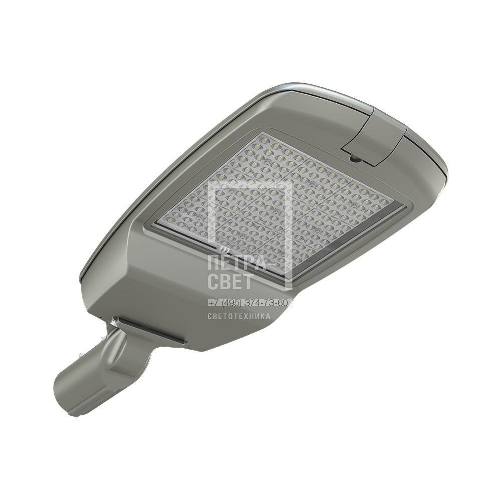 Серия наружных светодиодных светильников для освещения: • автомагистралей, широкополосных дорог, шоссе, • улиц и кварталов, • площадей, • наружных территорий промышленных объектов. Светильники «Гроза M CRI80 2700К» - это модели с повышенным индексом цветопередачи, цветовой температурой 2700 К и гарантией 5 лет. Они соответствуют современным требованиям крупных заказчиков (в т.ч. государственных компаний) к энергоэффективности, светораспределению, форм-фактору и совместимости с системами управления. Преимущества серии: • высокая энергоэффективность (до 136 лм/Вт); • литой корпус, обеспечивающий малые вес и габариты, регулировку угла наклона светильника, а также удобное обслуживание (доступ в корпус без дополнительного инструмента); • закаленное стекло, защищающее линзу; • защита от микросекундных импульсов высокой энергии; • коэффициент пульсации менее 1%; • совместимость с различными системами управления (NEMA и Zhaga разъемы (опционально)); • ножевой разъем (опционально): дополнительная защита при работе со светильником. [Корпус] Литой алюминиевый корпус покрыт порошковой краской. Технология литья позволила добиться оптимального веса при достаточной прочности, а также эстетичного внешнего вида. С помощью специальных силиконовых уплотнителей корпус надежно защищен от пыли и влаги. Конструкция светильника позволяет открывать его без дополнительных инструментов прямо на месте установки – для этого предусмотрен специальный механизм защелки. [Светодиодный модуль] Алюминиевая светодиодная плата изготовлена по SMT-технологии с большим количеством светодиодов – это обеспечивает высокую эффективность, малую габаритную яркость и комфортное неслепящее освещение. Светодиоды работают при низких токах (50% от номинальных и ниже), что повышает эффективность светильника и увеличивает срок его службы. [Линза] Модульная оптика из ПММА специально разработана под данную серию. Оптическая система «светодиод-линза» создает КСС, обеспечивающую оптимальные яркость, коэффициенты ослепленности и периферийности, равномерность освещения. [Закаленное стекло] Установленное закаленное стекло защищает линзу от загрязнений и агрессивного внешнего воздействия, а также упрощает очищение светильника. [Источник питания] Грозозащищенный источник питания в металлическом корпусе залит теплопроводящим компаундом. За счет этого снижается нагрев компонентов источника питания, поэтому он служит дольше. Источник питания защищен от микро- и наносекундных импульсов высокой энергии. [Крепление] Светильники оснащены поворотным креплением, которое позволяет устанавливать их как на консольную, так и на торшерную опору. Крепление позволяет регулировать угол наклона светильника в диапазоне ±15° с шагом 5°. Опционально можно установить поворотный кронштейн для крепления светильника на стену.