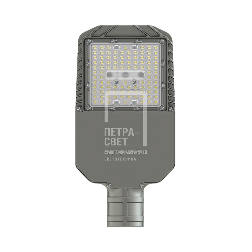 Серия консольных светодиодных светильников для освещения: • улиц и дорог местного значения, • кварталов и площадей, • придомовых и дворовых территорий, • наружных площадок промышленных объектов. Преимущества серии: • высокая энергоэффективность (до 173 лм/Вт); • литой алюминиевый корпус с оптимизированным радиатором для отвода тепла от светодиодов; • малый вес; • выгодная цена; • коэффициент пульсации менее 1%; • два типа линз из УФ-стабилизированного поликарбоната: 135х55° и 155х70°; • совместимость с различными системами управления (NEMA и Zhaga разъёмы (опционально)). [Корпус] Литой корпус изготовлен из алюминия и покрыт порошковой краской. Технология литья позволила добиться оптимального веса при высокой прочности, а также эстетичного внешнего вида. С помощью специальных силиконовых уплотнителей корпус надёжно защищён от попадания внутрь пыли и влаги. Корпус имеет большое количество рёбер для эффективного отведения тепла от светодиодов. [Светодиодный модуль] Алюминиевая светодиодная плата изготовлена по SMT-технологии (135х55° – 50 светодиодов, 155х70° – 99 светодиодов). Светодиоды работают при низких токах (50% от номинальных и ниже), что повышает эффективность светильника и увеличивает срок его службы. [Линза] Оптика изготовлена из УФ-стабилизированного поликарбоната. Светопропускание не менее 94%. Светильники могут комплектоваться двумя типами линз: 135х55° и 155х70°. [Источник питания] Источник питания в металлическом корпусе залит теплопроводящим компаундом. За счёт этого снижается нагрев компонентов источника питания, поэтому он служит дольше. Источник защищён от микро- и наносекундных импульсов высокой энергии до 15 кВ. [Крепление] С помощью консоли светильники крепятся на опору круглого сечения диаметром до 60 мм. Для возможности регулировки угла наклона светильники могут комплектоваться поворотным консольным креплением.