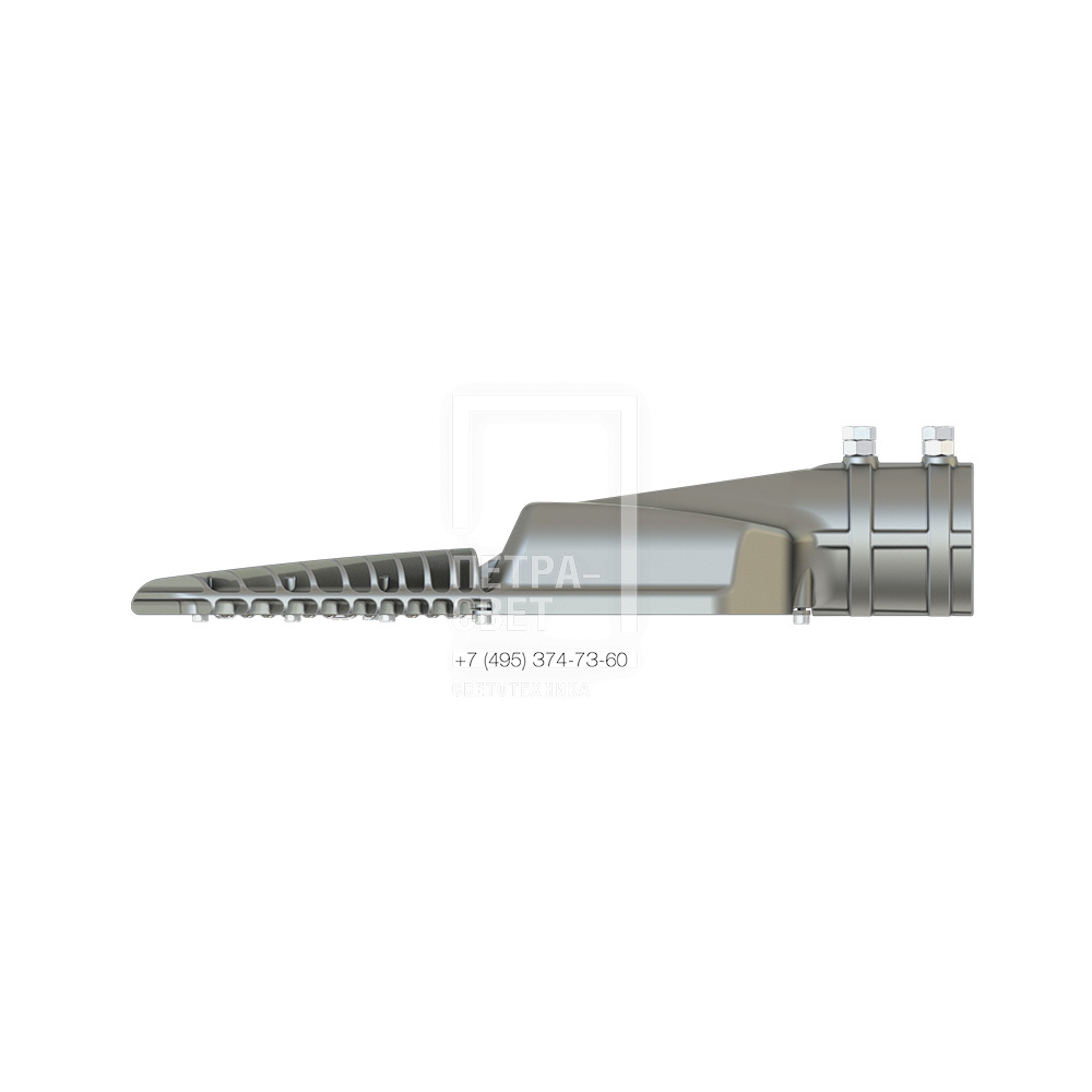 Серия консольных светодиодных светильников для освещения: • улиц и дорог местного значения, • кварталов и площадей, • придомовых и дворовых территорий, • наружных площадок промышленных объектов. Преимущества серии: • высокая энергоэффективность (до 173 лм/Вт); • литой алюминиевый корпус с оптимизированным радиатором для отвода тепла от светодиодов; • малый вес; • выгодная цена; • коэффициент пульсации менее 1%; • два типа линз из УФ-стабилизированного поликарбоната: 135х55° и 155х70°; • совместимость с различными системами управления (NEMA и Zhaga разъёмы (опционально)). [Корпус] Литой корпус изготовлен из алюминия и покрыт порошковой краской. Технология литья позволила добиться оптимального веса при высокой прочности, а также эстетичного внешнего вида. С помощью специальных силиконовых уплотнителей корпус надёжно защищён от попадания внутрь пыли и влаги. Корпус имеет большое количество рёбер для эффективного отведения тепла от светодиодов. [Светодиодный модуль] Алюминиевая светодиодная плата изготовлена по SMT-технологии (135х55° – 50 светодиодов, 155х70° – 99 светодиодов). Светодиоды работают при низких токах (50% от номинальных и ниже), что повышает эффективность светильника и увеличивает срок его службы. [Линза] Оптика изготовлена из УФ-стабилизированного поликарбоната. Светопропускание не менее 94%. Светильники могут комплектоваться двумя типами линз: 135х55° и 155х70°. [Источник питания] Источник питания в металлическом корпусе залит теплопроводящим компаундом. За счёт этого снижается нагрев компонентов источника питания, поэтому он служит дольше. Источник защищён от микро- и наносекундных импульсов высокой энергии до 15 кВ. [Крепление] С помощью консоли светильники крепятся на опору круглого сечения диаметром до 60 мм. Для возможности регулировки угла наклона светильники могут комплектоваться поворотным консольным креплением.