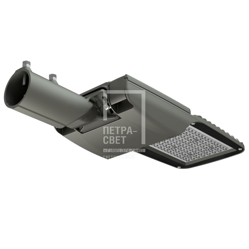 Серия консольных светодиодных светильников для освещения: • широкополосных дорог, шоссе; • улиц и кварталов; • площадей; • наружных территорий промышленных объектов. Преимущества серии: • литой корпус с доступом в отсек коммутации без инструмента; • быстрая замена источника питания; • высокая энергоэффективность (до 168 лм/Вт); • закаленное стекло, защищающее линзу; • коэффициент пульсации менее 1%; • два типа линз — 155х70° и 140x50°; • совместимость с различными системами управления (NEMA и Zhaga разъемы (опционально)). [Корпус] Литой корпус изготовлен из алюминия и покрыт порошковой краской. С помощью специальных силиконовых уплотнителей корпус надежно защищен от пыли и влаги. Конструкция корпуса позволяет открывать отсек коммутации без дополнительных инструментов прямо на месте установки светильника. Крышка отсека коммутации выполнена съемной — это позволяет производить быструю замену источника питания светильника. [Светодиодный модуль] Алюминиевая светодиодная плата изготовлена по SMT-технологии с использованием большого количества светодиодов, это обеспечивает высокую световую отдачу, малую габаритную яркость и комфортное неслепящее освещение. Светодиоды работают при низких токах (50% от номинальных и ниже), что повышает эффективность светильника и увеличивает срок его службы. [Линза] Модульная оптика из ПММА специально разработана под семейство светильников «Гроза». Таким образом, оптическая система «светодиод-линза» создает КСС, обеспечивающую оптимальные яркость, коэффициенты ослепленности и периферийности, равномерность освещения. [Закаленное стекло] Установленное в базовой комплектации закаленное стекло защищает линзу от загрязнений и агрессивного внешнего воздействия, а также упрощает процесс очистки светильника. [Источник питания] Источник питания в металлическом корпусе залит теплопроводящим компаундом, за счет чего снижается нагрев его компонентов, и источник питания служит дольше. У светильника есть возможность быстрой замены источника питания без демонтажа светильника с опоры. Источник питания защищен от микро- и наносекундных импульсов высокой энергии до 15 кВ. [Крепление] Светильники оснащены поворотным креплением, которое позволяет устанавливать их как на консольную, так и на торшерную опору диаметром от 45 до 60 мм. С помощью крепления можно регулировать угол наклона светильника в диапазоне ±20° с шагом 5°.