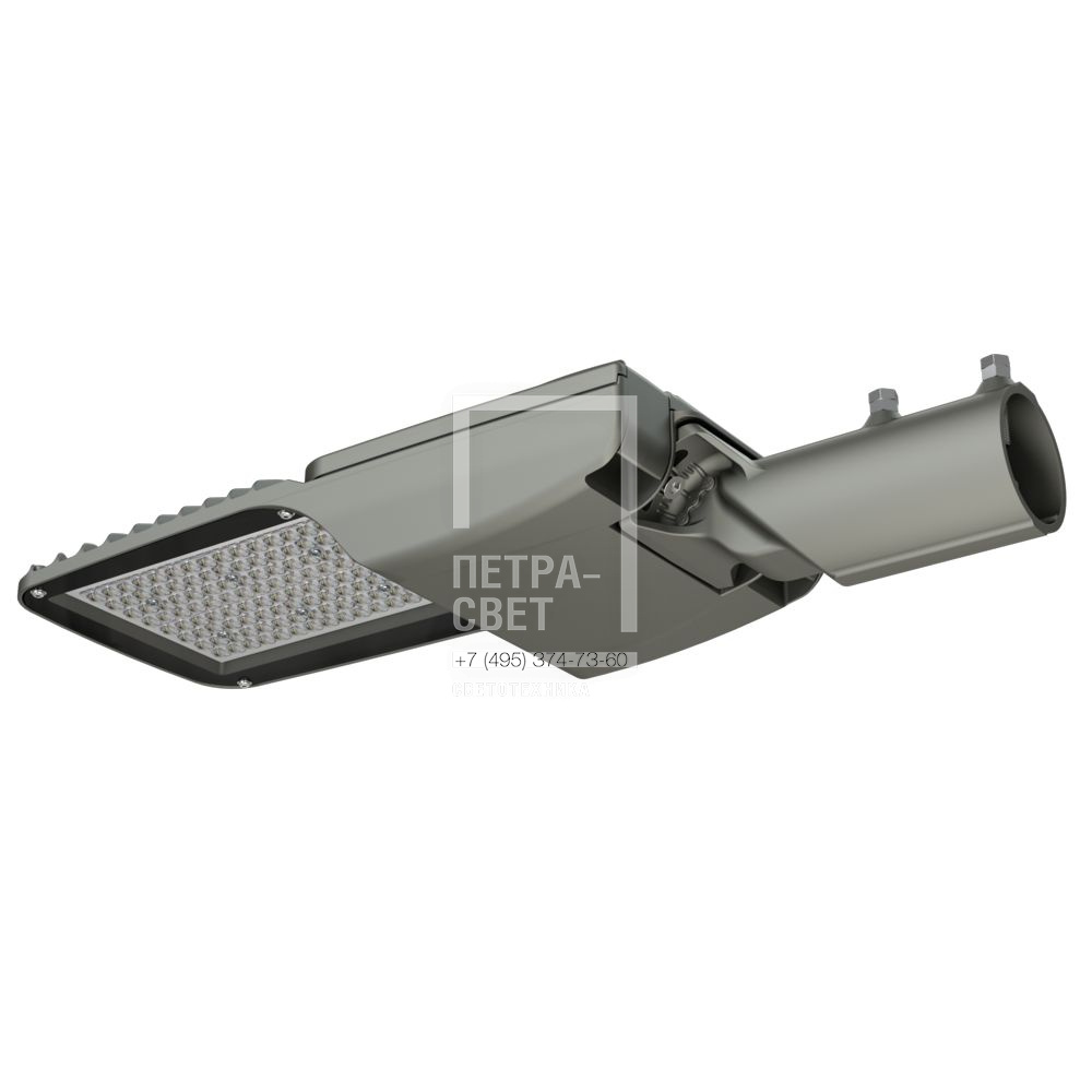 Серия консольных светодиодных светильников для освещения: • широкополосных дорог, шоссе; • улиц и кварталов; • площадей; • наружных территорий промышленных объектов. Преимущества серии: • литой корпус с доступом в отсек коммутации без инструмента; • быстрая замена источника питания; • высокая энергоэффективность (до 168 лм/Вт); • закаленное стекло, защищающее линзу; • коэффициент пульсации менее 1%; • два типа линз — 155х70° и 140x50°; • совместимость с различными системами управления (NEMA и Zhaga разъемы (опционально)). [Корпус] Литой корпус изготовлен из алюминия и покрыт порошковой краской. С помощью специальных силиконовых уплотнителей корпус надежно защищен от пыли и влаги. Конструкция корпуса позволяет открывать отсек коммутации без дополнительных инструментов прямо на месте установки светильника. Крышка отсека коммутации выполнена съемной — это позволяет производить быструю замену источника питания светильника. [Светодиодный модуль] Алюминиевая светодиодная плата изготовлена по SMT-технологии с использованием большого количества светодиодов, это обеспечивает высокую световую отдачу, малую габаритную яркость и комфортное неслепящее освещение. Светодиоды работают при низких токах (50% от номинальных и ниже), что повышает эффективность светильника и увеличивает срок его службы. [Линза] Модульная оптика из ПММА специально разработана под семейство светильников «Гроза». Таким образом, оптическая система «светодиод-линза» создает КСС, обеспечивающую оптимальные яркость, коэффициенты ослепленности и периферийности, равномерность освещения. [Закаленное стекло] Установленное в базовой комплектации закаленное стекло защищает линзу от загрязнений и агрессивного внешнего воздействия, а также упрощает процесс очистки светильника. [Источник питания] Источник питания в металлическом корпусе залит теплопроводящим компаундом, за счет чего снижается нагрев его компонентов, и источник питания служит дольше. У светильника есть возможность быстрой замены источника питания без демонтажа светильника с опоры. Источник питания защищен от микро- и наносекундных импульсов высокой энергии до 15 кВ. [Крепление] Светильники оснащены поворотным креплением, которое позволяет устанавливать их как на консольную, так и на торшерную опору диаметром от 45 до 60 мм. С помощью крепления можно регулировать угол наклона светильника в диапазоне ±20° с шагом 5°.