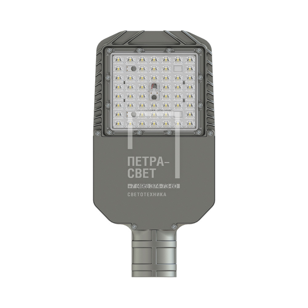 Серия консольных светодиодных светильников для освещения: • улиц и дорог местного значения, • кварталов и площадей, • придомовых и дворовых территорий, • наружных площадок промышленных объектов. Преимущества серии: • высокая энергоэффективность (до 173 лм/Вт); • литой алюминиевый корпус с оптимизированным радиатором для отвода тепла от светодиодов; • малый вес; • выгодная цена; • коэффициент пульсации менее 1%; • два типа линз из УФ-стабилизированного поликарбоната: 135х55° и 155х70°; • совместимость с различными системами управления (NEMA и Zhaga разъёмы (опционально)). [Корпус] Литой корпус изготовлен из алюминия и покрыт порошковой краской. Технология литья позволила добиться оптимального веса при высокой прочности, а также эстетичного внешнего вида. С помощью специальных силиконовых уплотнителей корпус надёжно защищён от попадания внутрь пыли и влаги. Корпус имеет большое количество рёбер для эффективного отведения тепла от светодиодов. [Светодиодный модуль] Алюминиевая светодиодная плата изготовлена по SMT-технологии (135х55° – 50 светодиодов, 155х70° – 99 светодиодов). Светодиоды работают при низких токах (50% от номинальных и ниже), что повышает эффективность светильника и увеличивает срок его службы. [Линза] Оптика изготовлена из УФ-стабилизированного поликарбоната. Светопропускание не менее 94%. Светильники могут комплектоваться двумя типами линз: 135х55° и 155х70°. [Источник питания] Источник питания в металлическом корпусе залит теплопроводящим компаундом. За счёт этого снижается нагрев компонентов источника питания, поэтому он служит дольше. Источник защищён от микро- и наносекундных импульсов высокой энергии до 15 кВ. [Крепление] С помощью консоли светильники крепятся на опору круглого сечения диаметром до 60 мм. Для возможности регулировки угла наклона светильники могут комплектоваться поворотным консольным креплением.