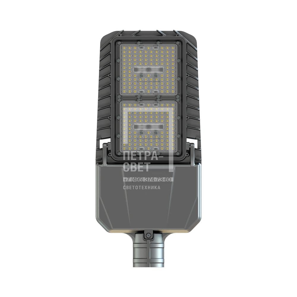 Серия консольных светодиодных светильников для освещения: • автомагистралей, широкополосных шоссе, • улиц и дорог местного значения, • кварталов и площадей, • придомовых и дворовых территорий, • наружных площадок промышленных объектов. Преимущества серии: • литой корпус с доступом в отсек коммутации без инструмента; • горячая замена источника питания; • высокая энергоэффективность (до 170 лм/Вт); • защита от микросекундных импульсов высокой энергии до 15 кВ; • коэффициент пульсации менее 1%; • два типа линз – 135х55° и 155х70°; • закалённое стекло (опционально); • совместимость с различными системами управления (NEMA и Zhaga разъёмы (опционально)). [Корпус] Литой алюминиевый корпус, покрытый порошковой краской, обеспечивает малые габариты и вес, а также эстетичный внешний вид. Специальные силиконовые уплотнители защищают от пыли и влаги. Конструкция корпуса позволяет открывать отсек коммутации прямо на месте установки светильника. Крышка отсека коммутации выполнена съёмной. [Светодиодный модуль] В светильнике установлено две алюминиевые светодиодные платы, изготовленные по SMT-технологии (135х55° – 100 светодиодов, 155х70° – 198 светодиодов). Светодиоды работают при низких токах (50% от номинальных и ниже), что повышает эффективность светильника и увеличивает срок его службы. [Линза] Оптика изготовлена из УФ-стабилизированного поликарбоната. Светопропускание не менее 94%. Светильники могут комплектоваться двумя типами линз: 135х55° и 155х70°. [Источник питания] Источник питания в металлическом корпусе залит теплопроводящим компаундом, за счёт чего снижается нагрев его компонентов, и источник питания служит дольше. Защита от микро- и наносекундных импульсов высокой энергии до 15 кВ. За счёт ножевых разъёмов и источника питания, установленных на крышке отсека коммутации, у серии «Гроза S» есть возможность горячей замены источника питания – без демонтажа светильника с опоры и отключения его от питающей сети. [Крепление] С помощью консольного крепления светильники устанавливаются на опору круглого сечения диаметром до 60 мм. Для возможности регулировки угла наклона светильники могут комплектоваться поворотным креплением.